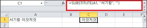| =SUBSTITUTE(A1, "서랑", "서기랑") =SUBSTITUTE(A1, "서기랑", "") |